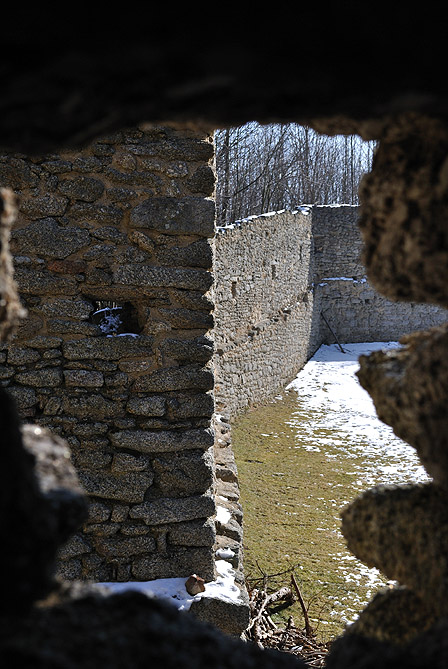 pohled skrz hradební střílnu |
