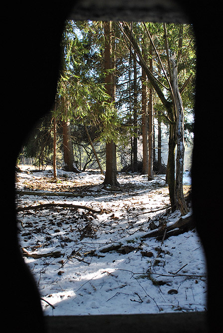 | výhled skrz střílnu |