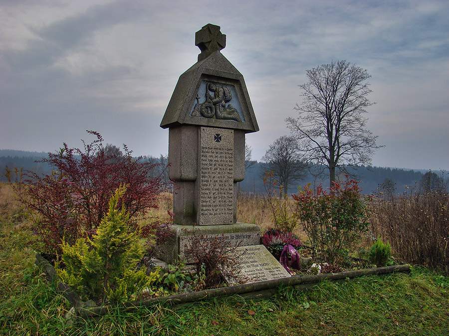 Památník padlým - vzpomínka na existenci osady Újezd bývalá cesta z Újezdu do německého Rehau cesta do Rehau