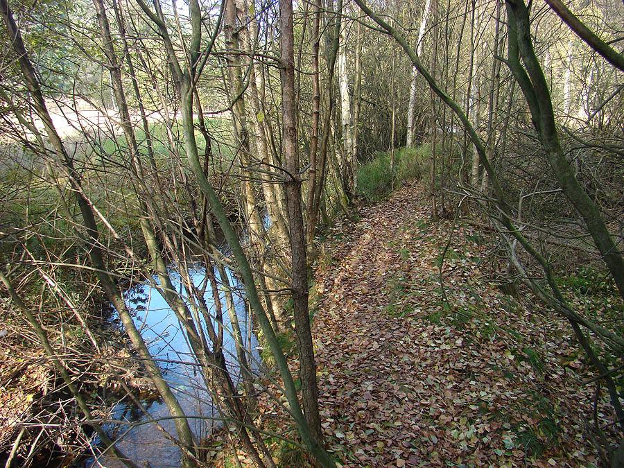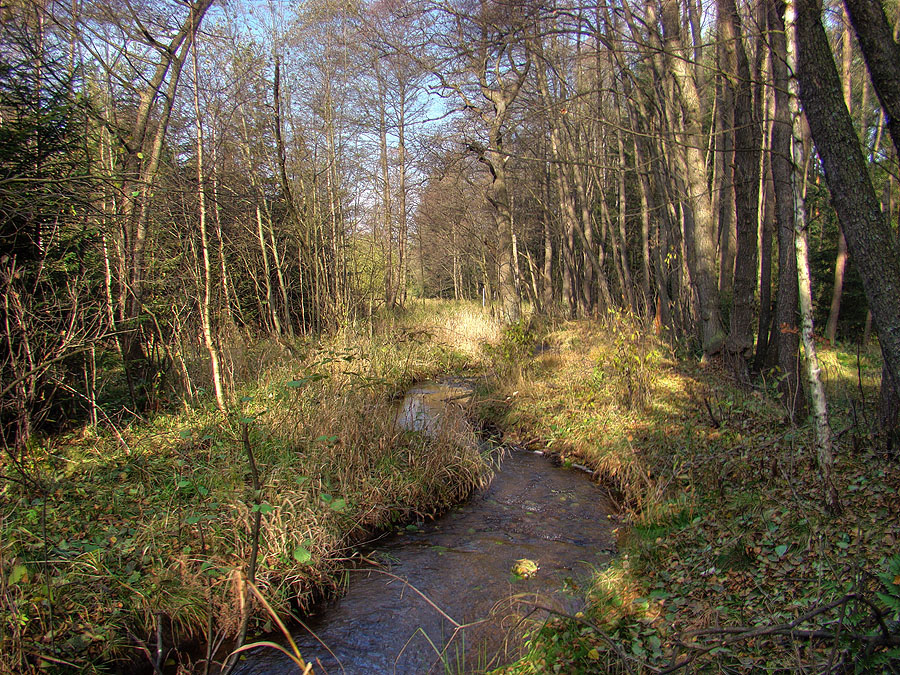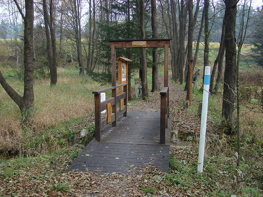 Újezdský potok cesta podél potoka na nejzápadnější bod ČR první pohled z roští na areál nejzápadnějšího bodu ČR