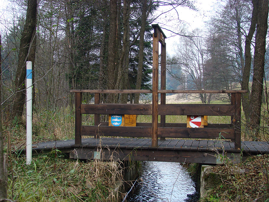 most Evropy na cestě z Újezdu do Rehau most Evropy, 100m dál proti proudu stával mlýn na české straně hlídá most vodník a žába na kameni