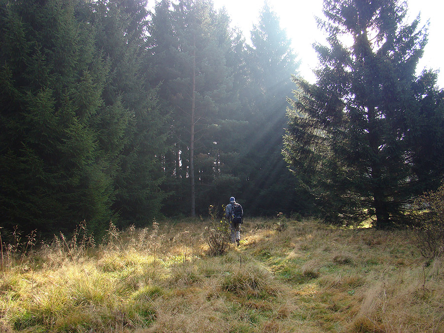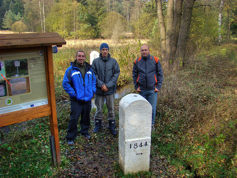 pohled na nejzápadnější bod České republiky z německé strany od hraničního kamene Újezdský potok triumfální foto na nejzápadnějším bodě ČR cestou zpátky do bývalého Újezdu