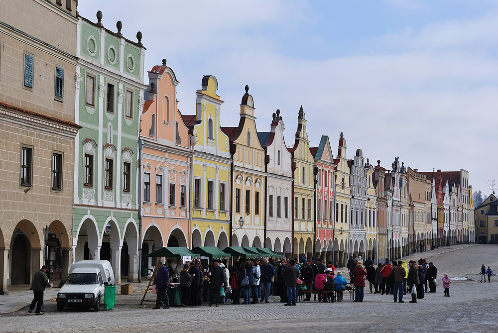 kostel sv.Jakuba (vlevo) a jezuitská kolej (v popředí)