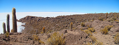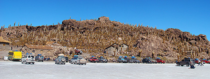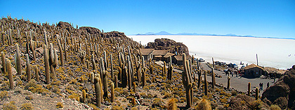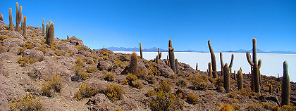 Isla Incahuasi uprostřed solné pláně Salar de Uyuni