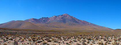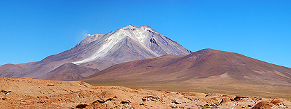 aktivní vulkán Ollagüe (5865m) leží na chilsko-bolívijské hranici